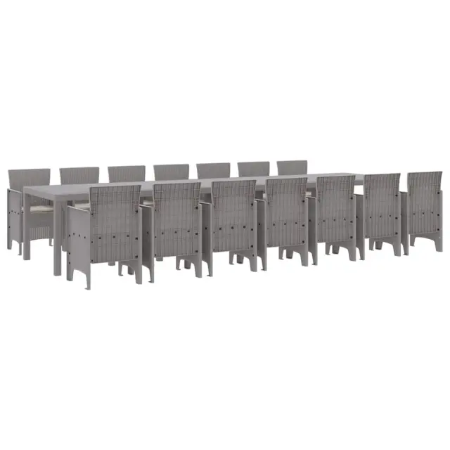 vidaXL Vrtna jedilna garnitura s blazinami 15 pcs Svetlo siva PP