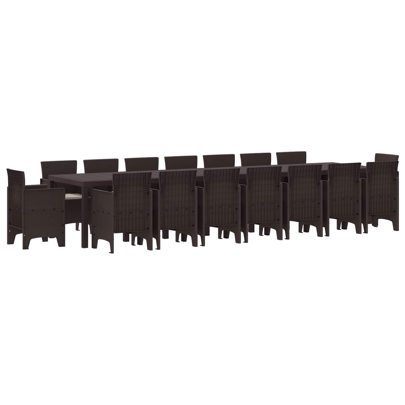 vidaXL Vrtna jedilna garnitura s blazinami z blazino 17 pcs Rjava PP