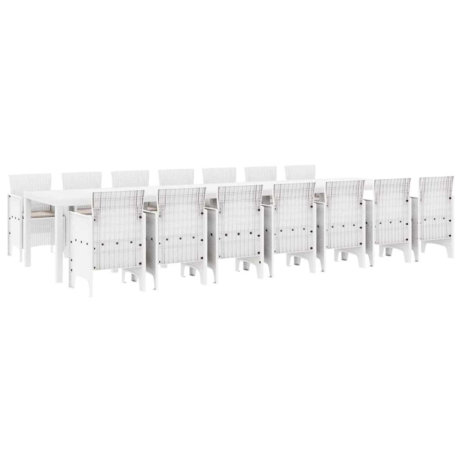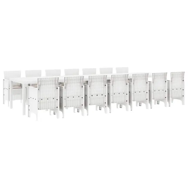 vidaXL Vrtna jedilna garnitura s blazinami z blazino 15 pcs Bela PP