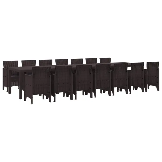 vidaXL Vrtna jedilna garnitura s blazinami z blazino 15 pcs Rjava PP