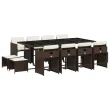 vidaXL Vrtna jedilna garnitura z blazinami 13-delna rjav poli ratan