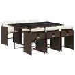 vidaXL Vrtna jedilna garnitura z blazinami 7-delna rjav poli ratan