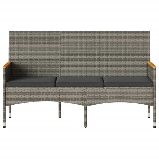 vidaXL Vrtna klop 3-sedežna z blazinami siv poli ratan