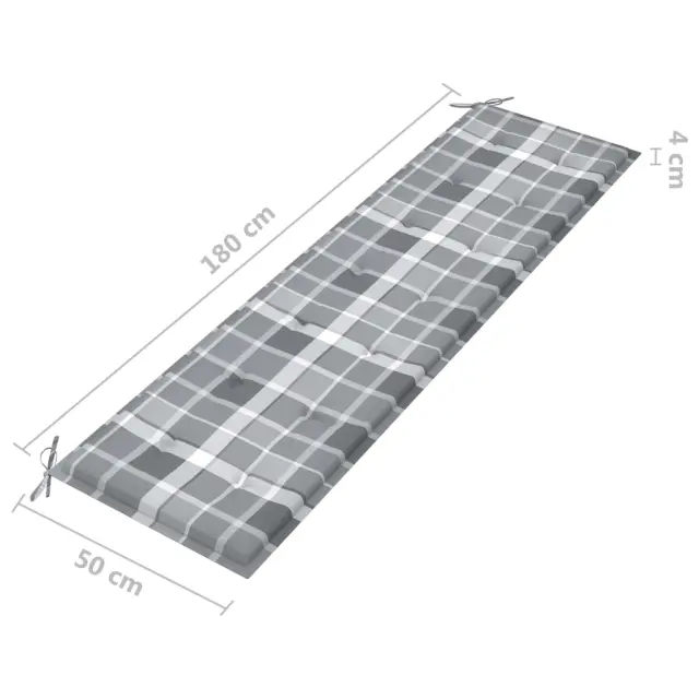 vidaXL Vrtna klop s sivo karo blazino 175 cm trdna tikovina