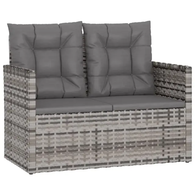Ta vrtna klop z blazinami je odličen dodatek za vaš vrt in teraso, saj bo naredila trajen vtis! Vzdržljiv material: PE ratan, znan tudi kot poli ratan, je odporen na vremenske vplive in enostaven za čiščenje. Na zunaj ostane lep dolgo časa. Je cenovno ugodnejši od drugih materialov, hkrati pa zagotavlja odlično kakovost, udobje in estetski videz.Stabilen okvir: Prašno premazan jeklen okvir zagotavlja trdnost in stabilnost.Udobna izkušnja sedenja: Za vaše udobje so priložene dodatne blazine. Opomba:Vsakemu izdelku je priložen priročnik za enostavno sestavljanje.Da bi podaljšali življenjsko dobo vašega zunanjega pohištva, vam priporočamo, da ga zaščitite z vodoodporno prevleko.Barva: SivaBarva blazin: AntracitnaMaterial: PE ratan, jeklen okvir s prašnim premazomMaterial prevlek za blazine: Tkanina (100 % poliester)Polnilo sedežne blazine: Vertikalna vlaknaPolnilo hrbtne blazine: PP bombažDimenzije: 105 x 56 x 75 cm (Š x G x V)Velikost sedeža: 103,5 x 48 cm (Š x G)Višina sedeža, merjena od tal: 33 cmVišina naslonjala za roke, merjena od tal: 56 cmDebelina sedežne blazine: 3,5 cmMaksimalna nosilnost (na sedež): 110 kgPaket vsebuje:1 x Vrtna klop2 x Sedežna blazina2 x Blazina za hrbet 362319