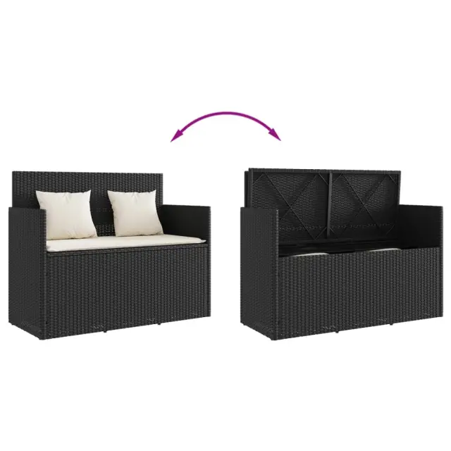 vidaXL Vrtna klop z blazinami črn poli ratan