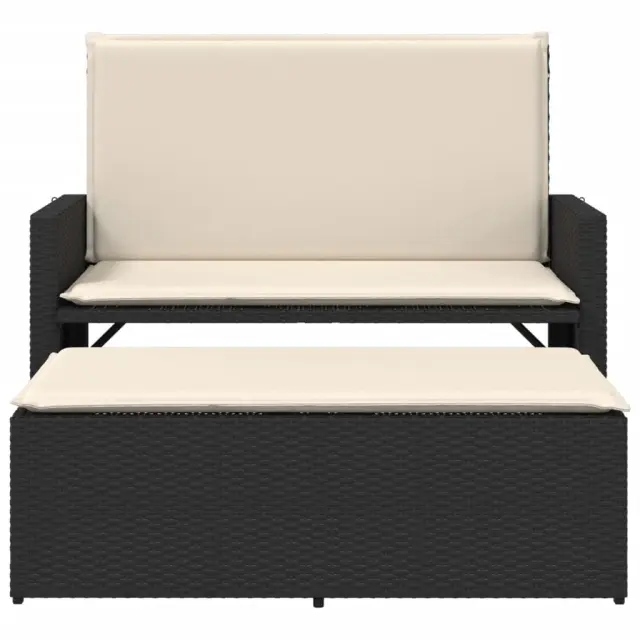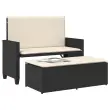 vidaXL Vrtna klop z blazinami in stolčkom črn poli ratan