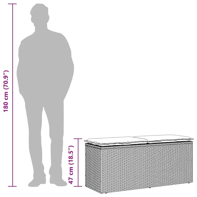 vidaXL Vrtna klop z blazino Črna 110x40x44 cm Poliedrični ratan