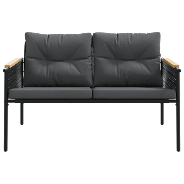 vidaXL Vrtna klop z blazinami 116 cm črno jeklo