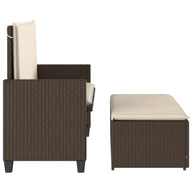 vidaXL Vrtna klop z blazinami in stolčkom rjav poli ratan