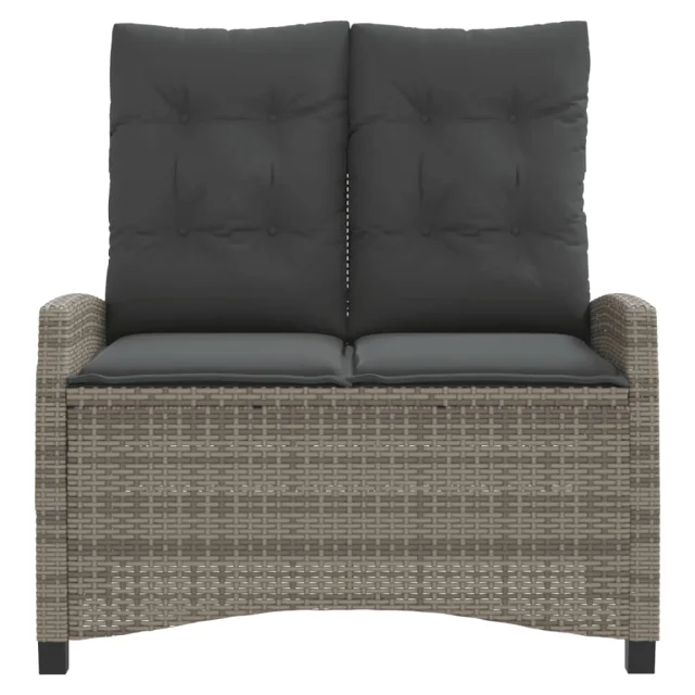 vidaXL Vrtna klop z blazinami siv poli ratan