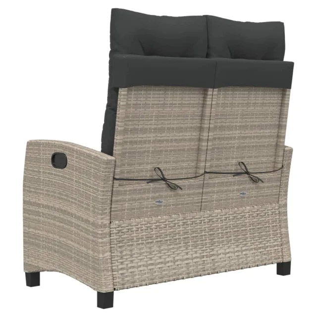 vidaXL Vrtna klop z blazinami svetlo siv poli ratan