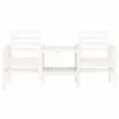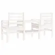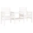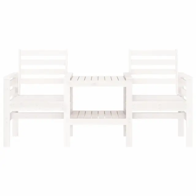Uživajte v romantičnih večerih na vrtni klopi z vgrajeno čajno mizico za kozarce vina, prigrizke ali kavo. Trden borov les: Vrtna klop z mizo je izdelana iz trdnega borovega lesa, ki zagotavlja trdnost in stabilnost. Trdna borovina je čudovit naravni material. Borovina ima ravne vzorce, grče pa dajejo materialu njegov značilen, rustikalen videz.Udobno sedenje: Zunanja klop z mizo ima naslone za roke in naslonjalo za hrbet ter vam zagotavlja največje udobje.Praktična vgrajena mizica: Vgrajena mizica in spodnja polica med sedežema sta idealni za shranjevanje pijače, prigrizkov, revij in drugih predmetov, ki jih želite imeti na dosegu roke.Zasnova iz letev: Zasnova iz letev zunanje klopi preprečuje nabiranje vode, ohranja sedež suh in preprečuje nepotrebno gnitje. Dobro je vedeti:Če želite, da vaše zunanje pohištvo ostane lepo, vam priporočamo, da ga zaščitite z vodoodporno prevleko.Barva: BelaMaterial: Trdna borovinaDimenzije: 175 x 55 x 89 cm (Š x G x V)Velikost sedeža (na sedež): 50 x 46,5 cm (Š x G)Velikost mizice: 52 x 44,5 cm (Š x G)Višina naslonjala za roke, merjena od tal: 64 cmVišina sedeža, merjena od tal: 42 cmMaksimalna nosilnost (na sedež): 110 kgPotrebno sestavljanje: DaPriložena blazina: Ne 825157