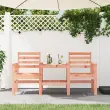 Uživajte v romantičnih večerih na vrtni klopi z vgrajeno čajno mizico za kozarce vina, prigrizke ali kavo. Trden les douglas: Vrtna klop z mizo je izdelana iz trdnega lesa douglas za trdnost in stabilnost. Trden les douglas je zelo trpežen les, ki se dobro obnese na prostem. Les douglas je tudi dovolj močan ter ne potrebuje veliko vzdrževanja, tudi pod vplivom vremenskih vplivov.Udobno sedenje: Zunanja klop z mizo ima naslone za roke in naslonjalo za hrbet ter vam zagotavlja največje udobje.Praktična vgrajena mizica: Vgrajena mizica in spodnja polica med sedežema sta idealni za shranjevanje pijače, prigrizkov, revij in drugih predmetov, ki jih želite imeti na dosegu roke.Zasnova iz letev: Zasnova iz letev zunanje klopi preprečuje nabiranje vode, ohranja sedež suh in preprečuje nepotrebno gnitje. Dobro je vedeti:Če želite, da vaše zunanje pohištvo ostane lepo, vam priporočamo, da ga zaščitite z vodoodporno prevleko.Material: Trden les douglas (neobdelan)Dimenzije: 175 x 55 x 89 cm (Š x G x V)Velikost sedeža (na sedež): 50 x 46,5 cm (Š x G)Velikost mizice: 52 x 44,5 cm (Š x G)Višina naslonjala za roke, merjena od tal: 64 cmVišina sedeža, merjena od tal: 42 cmMaksimalna nosilnost (na sedež): 110 kgPotrebno sestavljanje: DaPriložena blazina: Ne 825161