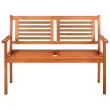Ta lesena klop iz trdnega evkaliptusa ima priloženo tudi blazino, vašemu zunanjemu bivalnemu prostoru pa bo dodala naraven pridih! Zasnovana je tako, da bo ključna točka vašega vrta, terase ali dvorišča. Ta vrtna klop je izdelana iz trdnega evkaliptusa, zato je močna in stabilna. Ergonomska oblika lesene klopi zagotavlja optimalno udobje med sedenjem. Z oljnim premazom zaščitena površina je preprosta za čiščenje z vlažno krpo. Blazina prispeva k dodatnemu udobju. Blazina ima dva kompleta vrvic za trdno pritrditev na klop.Barva blazine: ZelenaMaterial: Trden evkaliptusov les z oljnim premazomMaterial blazine: Blago (100 % poliester)Dimenzije: 120 x 60 x 89 cm (Š x G x V)Širina sedeža: 110 cmGlobina sedeža: 52 cmVišina sedeža, merjena od tal: 44 cmVišina naslonjala za roke, merjena od tal: 64 cmDimenzije blazine: 120 x 50 x 4 cm (Š x G x D)Potrebno sestavljanje: DaPaket vsebuje:1 x Klop1 x Blazina 3060974