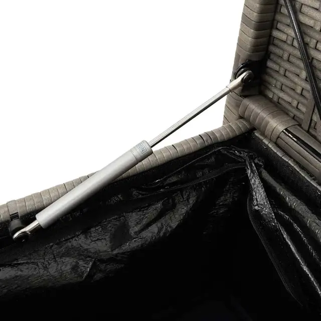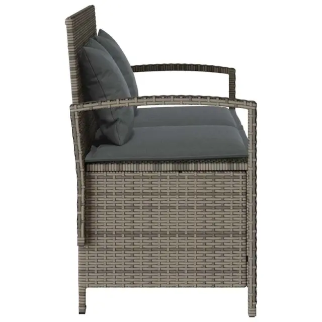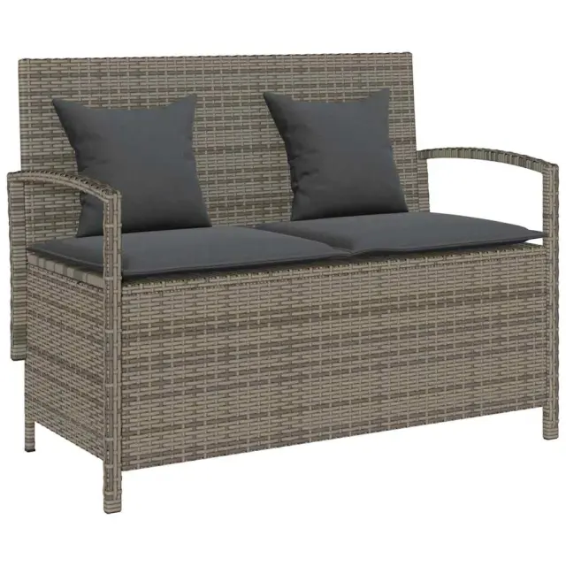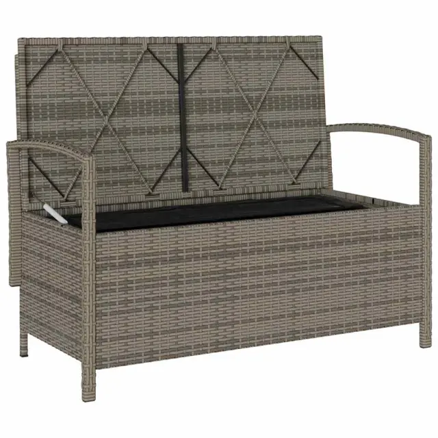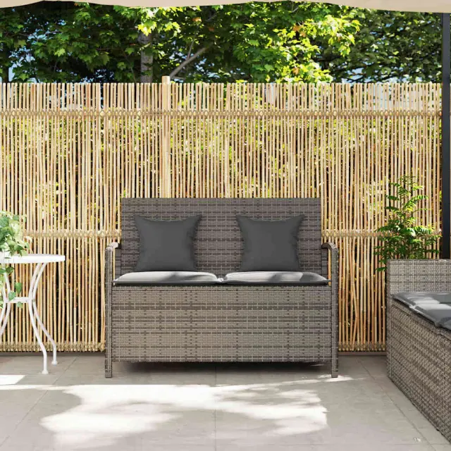 vidaXL Vrtna klop za shranjevanje z blazino siv poli ratan