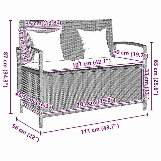 vidaXL Vrtna klop za shranjevanje z blazino svetlo siva poli ratan