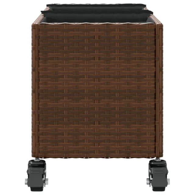 vidaXL Vrtna korita s kolesi 2 kosa rjava 107x32x38 cm poli ratan