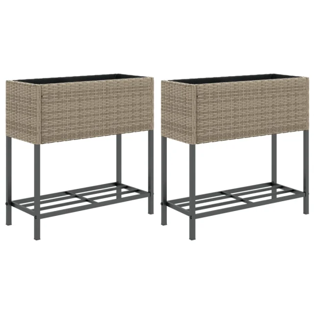 vidaXL Vrtna korita s polico 2 kosa siva 70x28x70 cm poli ratan