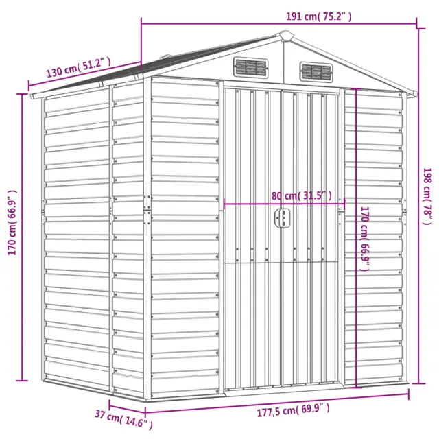 vidaXL Vrtna lopa antracit 191x130x198 cm pocinkano jeklo