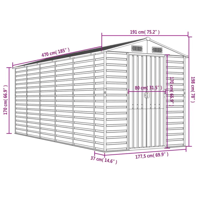vidaXL Vrtna lopa antracit 191x470x198 cm pocinkano jeklo