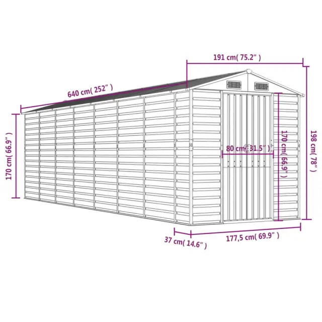 vidaXL Vrtna lopa rjava 191x640x198 cm pocinkano jeklo