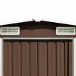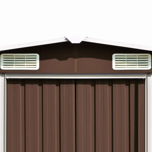 Ta skladiščna lopa ima zračnike, ki zagotavljajo dobro prezračevanje. Dvojna drsna vrata na sprednji strani omogočajo preprosto vstopanje in izstopanje. Pocinkana jeklena konstrukcija zagotavlja vzdržljivost in trdnost skladiščne lope, ki ne bo zarjavela ali drugače oslabela zaradi vremenskih razmer.