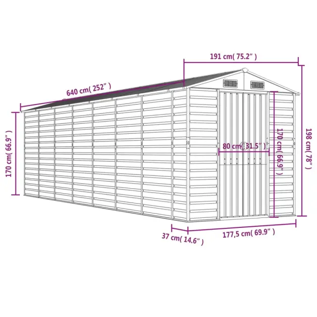 vidaXL Vrtna lopa svetlo rjava 191x640x198 cm pocinkano jeklo
