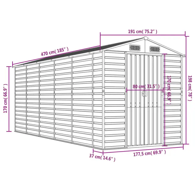 vidaXL Vrtna lopa svetlo siva 191x470x198 cm pocinkano jeklo