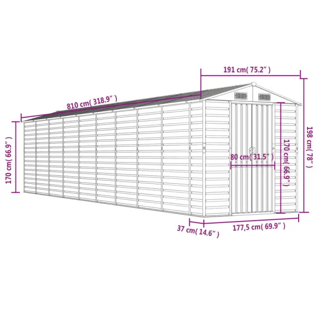 vidaXL Vrtna lopa svetlo rjava 191x810x198 cm pocinkano jeklo