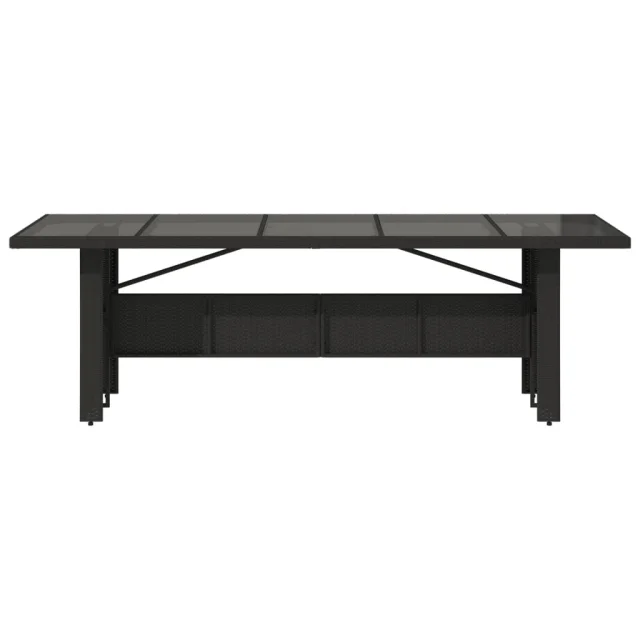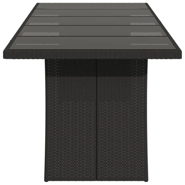 vidaXL Vrtna miza s stekleno ploščo črna 240x90x75 cm poli ratan