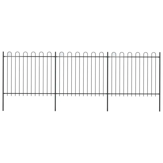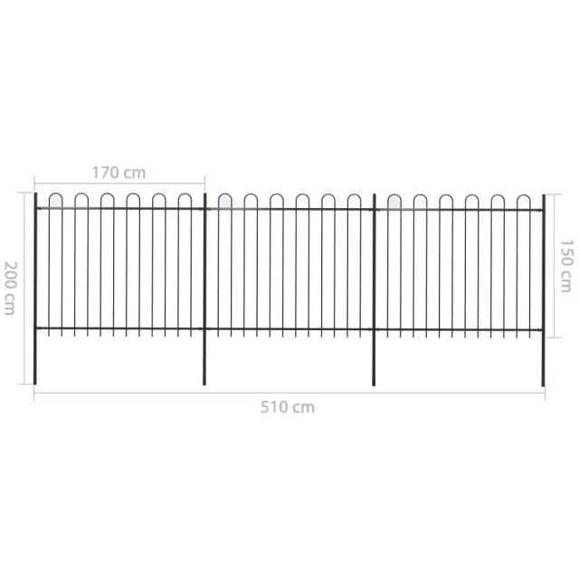 vidaXL Vrtna ograja z obročastimi vrhovi jeklo 5,1x1,5 m črna
