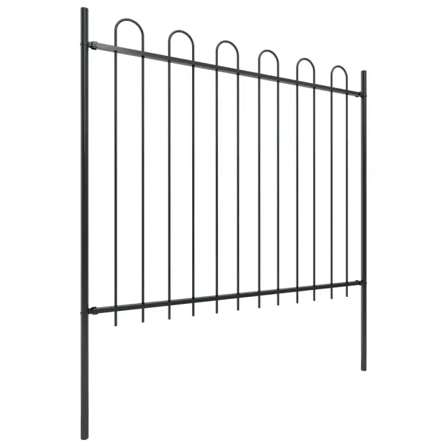vidaXL Vrtna ograja z obročastimi vrhovi jeklo 6,8x1,5 m črna