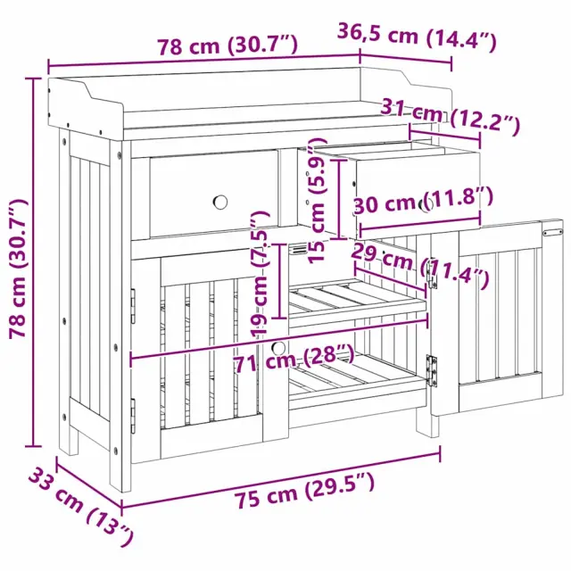 Ta moderna vrtna omara je zasnovana tako, da združuje eleganco in funkcionalnost, saj je top izbira za vse, ki iščejo red in stil v svojem zunanjem prostoru. Natančno narejena iz trdega akacijevega lesa, ta rešitev za shranjevanje se lepo prilega vašim terasam ali balkonom. Njeni naravni toni prinašajo prijetno vzdušje, medtem ko njena moderna oblika zagotavlja čist zadnji videz. Ne glede na to, ali gre za orodje ali dodatke, ta omara omogoča fino organizacijo in izboljša videz prostora.