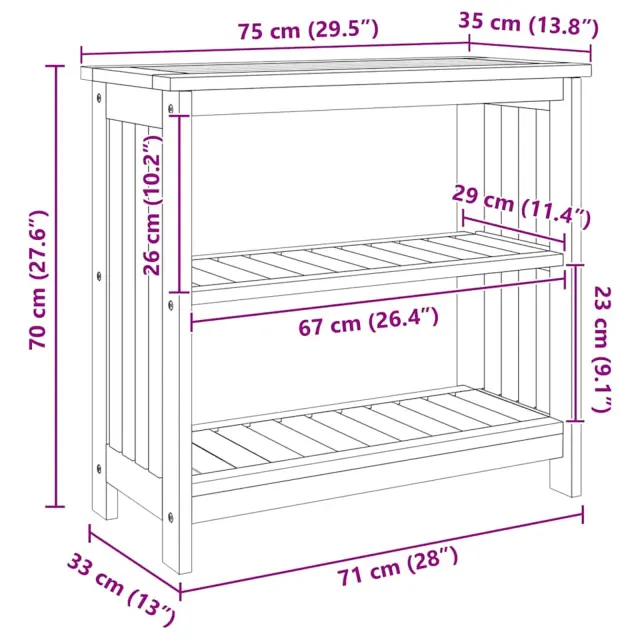 Ta vrtnarska omara je prava kombinacija modernosti in funkcionalnosti. Njena enostavna zasnova in pravokotna silhueta nudita privlačno rešitev za organizacijo orodja in opreme, kar jo dela za idealno izbiro za vrt, balkon ali teraso. Naravna rjava barva in trdna konstrukcija iz akacijevega lesa se odlično prilegata zunanjim okoljem in zagotavljata odlično zmogljivost shranjevanja.