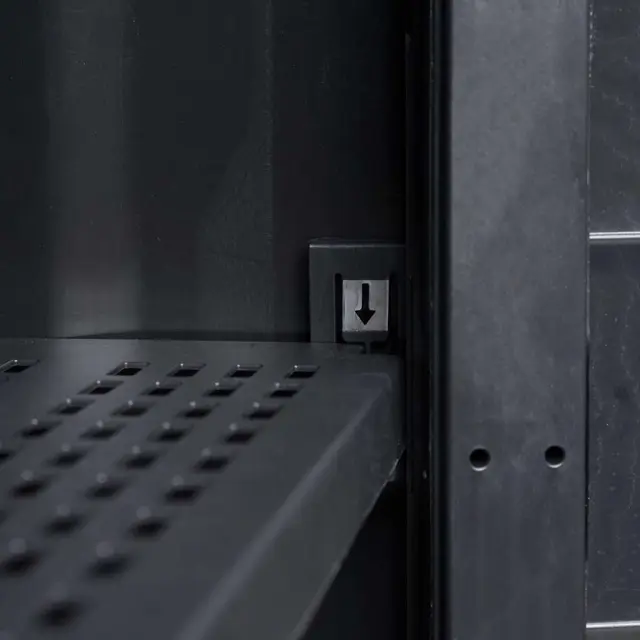 Omarica s TÜV-GS certifikatom je izdelana iz močnega, trpežnega polipropilena (PP). Omarica ima zračne police, ki se lahko prilagajajo za shranjevanje stvari različnih velikosti. Vrtno omarico se lahko za dodatno varnost zaklene s ključavnico (ključavnica ni priložena).