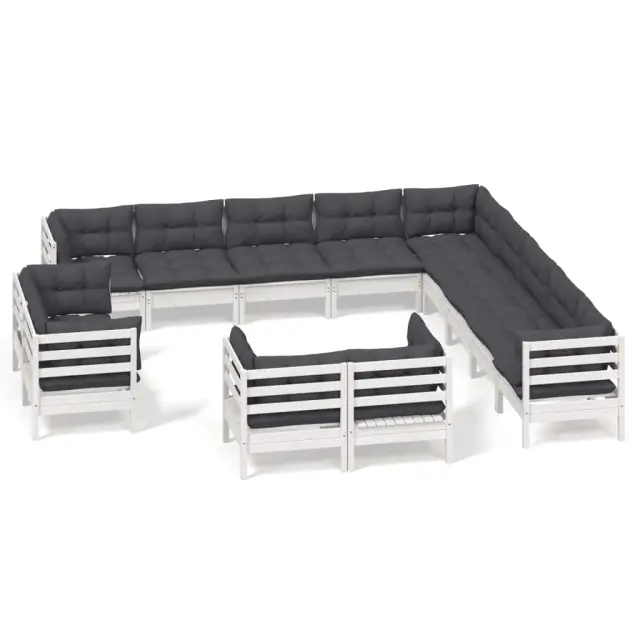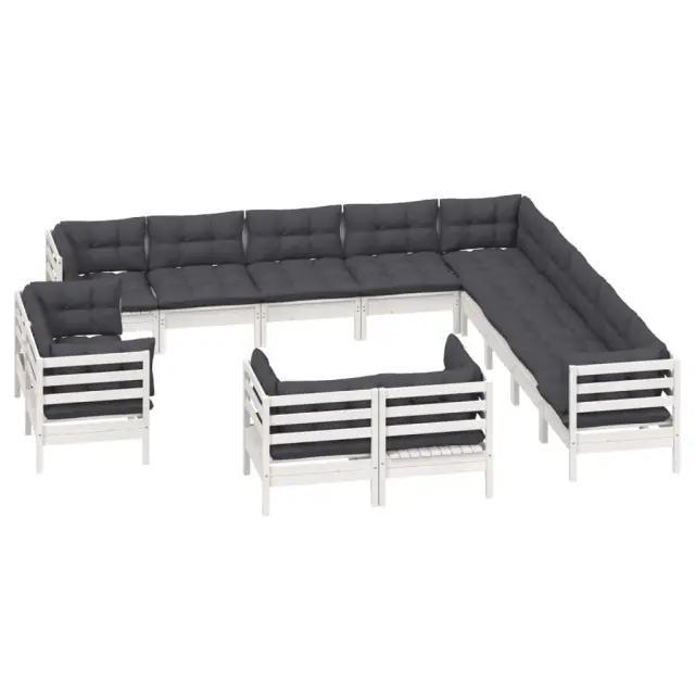 vidaXL Vrtna sedežna garnitura 13-delna z blazinami bela borovina