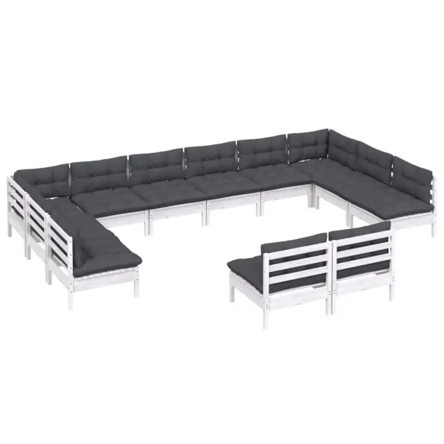 vidaXL Vrtna sedežna garnitura 12-delna z blazinami bela borovina