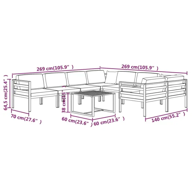 • Vrhunski material: Zunanja sedežna garnitura iz aluminija je vremensko odporna in močna. Lahka konstrukcija omogoča preprosto premikanje.