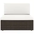 Zahvaljujoč vremensko odpornemu PE ratanu je ta sedež trpežen, enostaven za čiščenje in primeren za vsakodnevno uporabo. Garnitura ima močan prašno barvan jeklen okvir. Na klubsko mizico s ploščo iz kaljenega stekla lahko odložite knjige, revije ali čaj za blagodejno in sproščujoče preživljanje časa. Ta komplet je tudi lahek in modularen, zato je popolnoma prilagodljiv. Lahko ga enostavno premikate, zato se poda k vsaki postavitvi. Debele, odstranljive blazine so mehke in udobne. Kombinirate ga lahko z drugimi modularnimi segmenti in tako ustvarite svojo lastno vrtno sedežno garnituro!