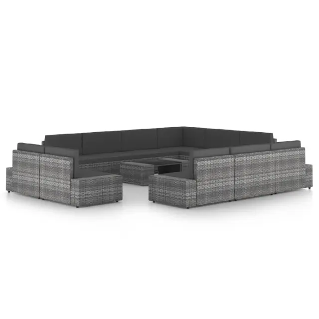 vidaXL Vrtna sedežna garnitura 12-delna z blazinami siv poli ratan