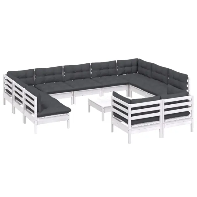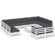 vidaXL Vrtna sedežna garnitura 12-delna z blazinami bela borovina