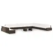 Zahvaljujoč vremensko odpornemu PE ratanu je ta sedež trpežen, enostaven za čiščenje in primeren za vsakodnevno uporabo. Garnitura ima močan prašno barvan jeklen okvir. Na klubsko mizico s ploščo iz kaljenega stekla lahko odložite knjige, revije ali čaj za blagodejno in sproščujoče preživljanje časa. Ta komplet je tudi lahek in modularen, zato je popolnoma prilagodljiv. Lahko ga enostavno premikate, zato se poda k vsaki postavitvi. Debele, odstranljive blazine so mehke in udobne. Kombinirate ga lahko z drugimi modularnimi segmenti in tako ustvarite svojo lastno vrtno sedežno garnituro!