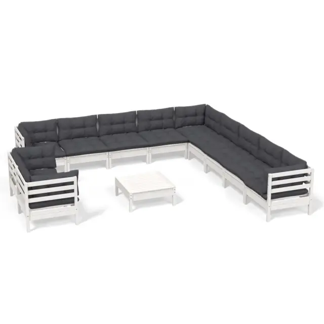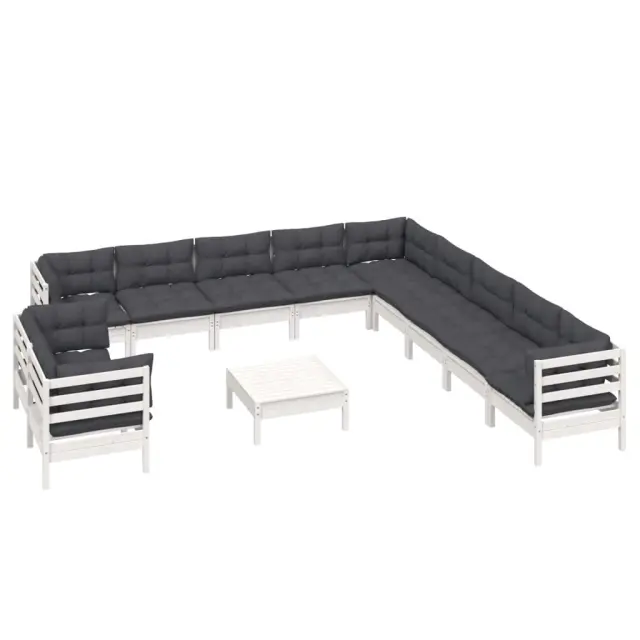 vidaXL Vrtna sedežna garnitura 12-delna z blazinami bela borovina