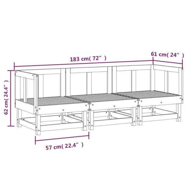 vidaXL Vrtna sedežna garnitura 3-delna impregnirana borovina