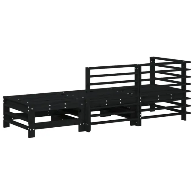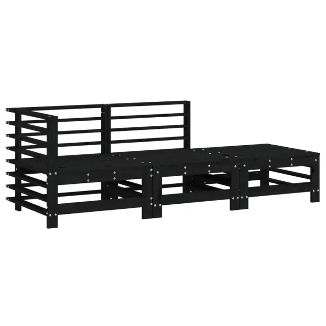 vidaXL Vrtna sedežna garnitura 3-delna črna trdna borovina