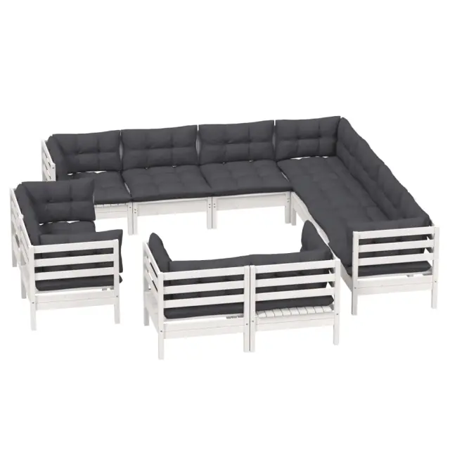 vidaXL Vrtna sedežna garnitura 11-delna z blazinami bela borovina