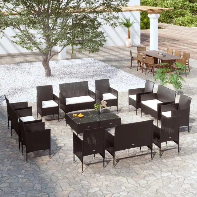 Ustvarite prostor za sproščanje s to vrtno sedežno garnituro iz poli ratana. S svojim elegantnim dizajnom bo postala ključna točka vašega vrta ali terase!