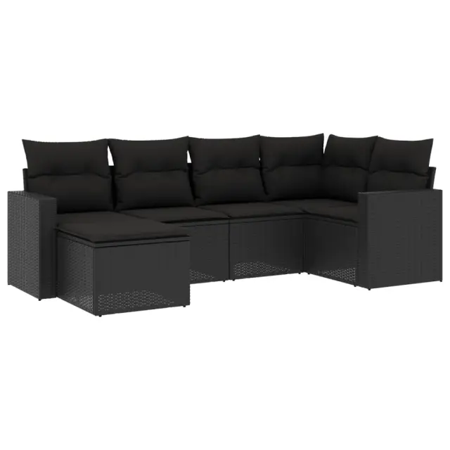 vidaXL Vrtna sedežna garnitura 6-delna z blazinami črna poli ratan