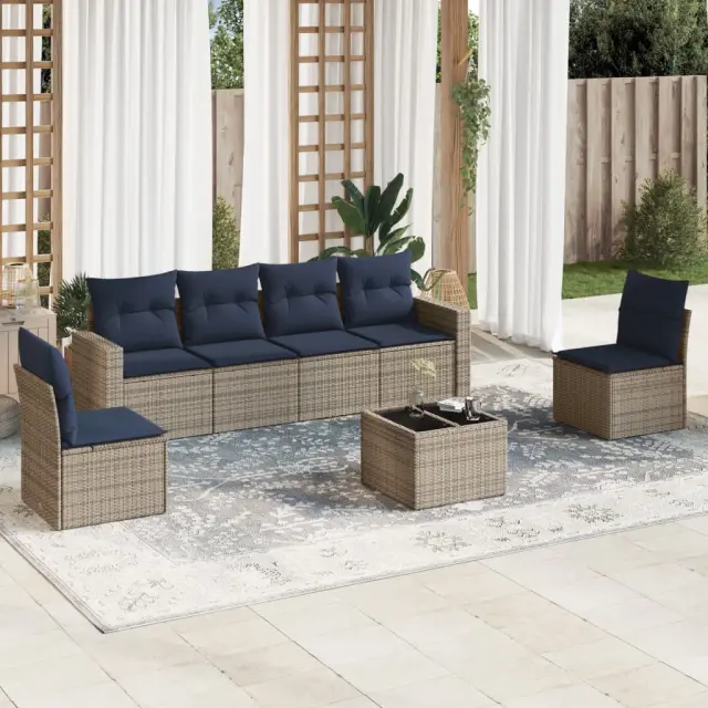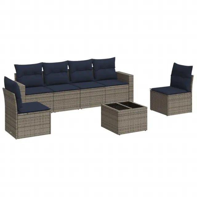 vidaXL Vrtna sedežna garnitura 7-delna z blazinami siv poli ratan